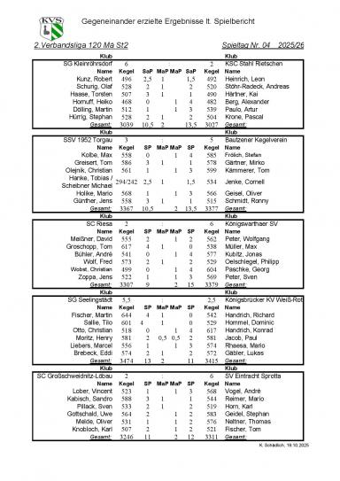 SG Kleinröhrsdorf 1. - KSC Stahl Rietschen 6:2 (3039:3027)