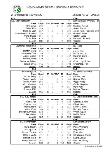 Wir spielten mit: Robert Kunz 494 Holz (0MP), Olaf Schurig 510 Holz (0MP), Torsten Haase 499 Holz (1MP), Martin Dölling 493 Holz (0MP), Heiko Hornuff 501 Holz (0MP) und Stephan Hürrig 503 Holz (0MP).
