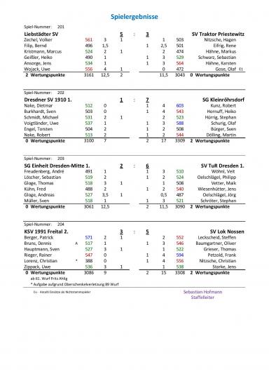 Wir spielten mit: Robert Kunz 603 Holz (1MP), Heiko Horrnuf 543 Holz (1MP), Stephan Hürrig 523 Holz (0MP), Olaf Schurig 588 Holz ( 1MP), Sven Bürger 508 Holz (1MP) und Martin Dölling 544 Holz (1MP)
