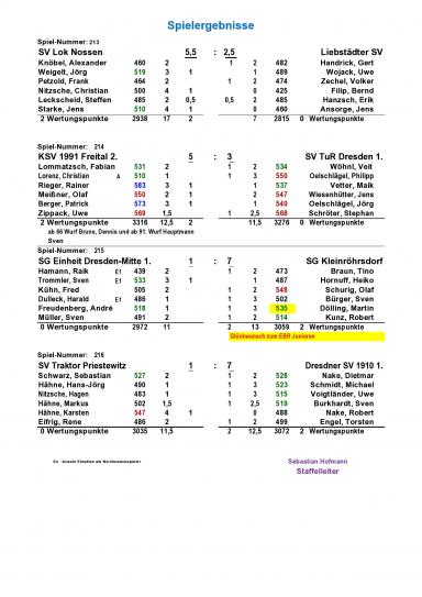 Wir spielten mit: Tino Braun 473 Holz (1MP), Heiko Hornuff 487 Holz (0MP), Olaf Schurig 548 Holz (1MP), Sven Bürger 502 Holz (1MP), Martin Dölling 535 Holz (1MP) und Robert Kunz 514 Holz (1MP).