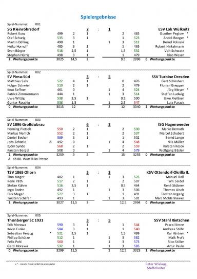 Wir spielten mit Robert Kunz 499 Holz (1 MP), Olaf Schurig 535 (1MP), Martin Dölling 490 Holz (0MP), Heiko Hornuff 485 Holz (1 MP), Sven Bürger 518 Holz (1MP) und Stephan Hürrig 498 Holz (1MP).