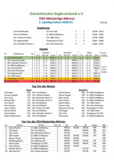 SG Kleinröhrsdorf 1. - SV Pirna Süd 7:1 (3078:3031)
