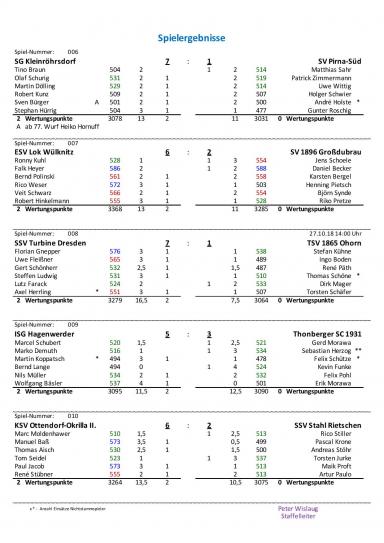 Wir spielten mit: Tino Braun 504 Holz (0MP), Olaf Schurig 531 Holz (1MP), Martin Dölling 529 Holz (1MP), Robert Kunz 509 Holz (1MP), Sven Bürger/Hheiko Hornuff 501 Holz (1MP) und Stephan Hürrig 504 Holz (1MP).