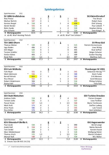 Wir spielten mit: Tino Braun 542 Holz (0MP), Robert Kunz 499 Holz (0MP), Olaf Schurig 608 Holz (1MP), Paul Liebold 536 Holz (0MP), Stephan Hürrig 539 Holz (1MP) und Sven Bürger/Toni Schölzel (1MP).