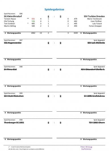 Wir spielten mit: Torsten Haase 551 Holz (1MP), Olaf Schurig 516 Holz (1MP), Toni Schölzel 495 Holz 495 Holz (1MP) und Martin Dölling 500 Holz (1MP).
