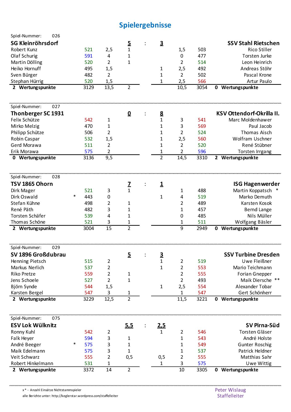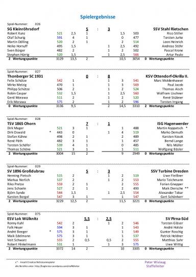 Wir spielten mit: Robert Kunz 521 Holz (1MP), Olaf Schurig 591 Holz (1MP), Martin Dölling 520 Holz (1MP), Heiko Hornuff 495 Holz (0MP), Sven Bürger 482 Holz (0MP) und Stephan Hürrig 520 Holz (0MP).