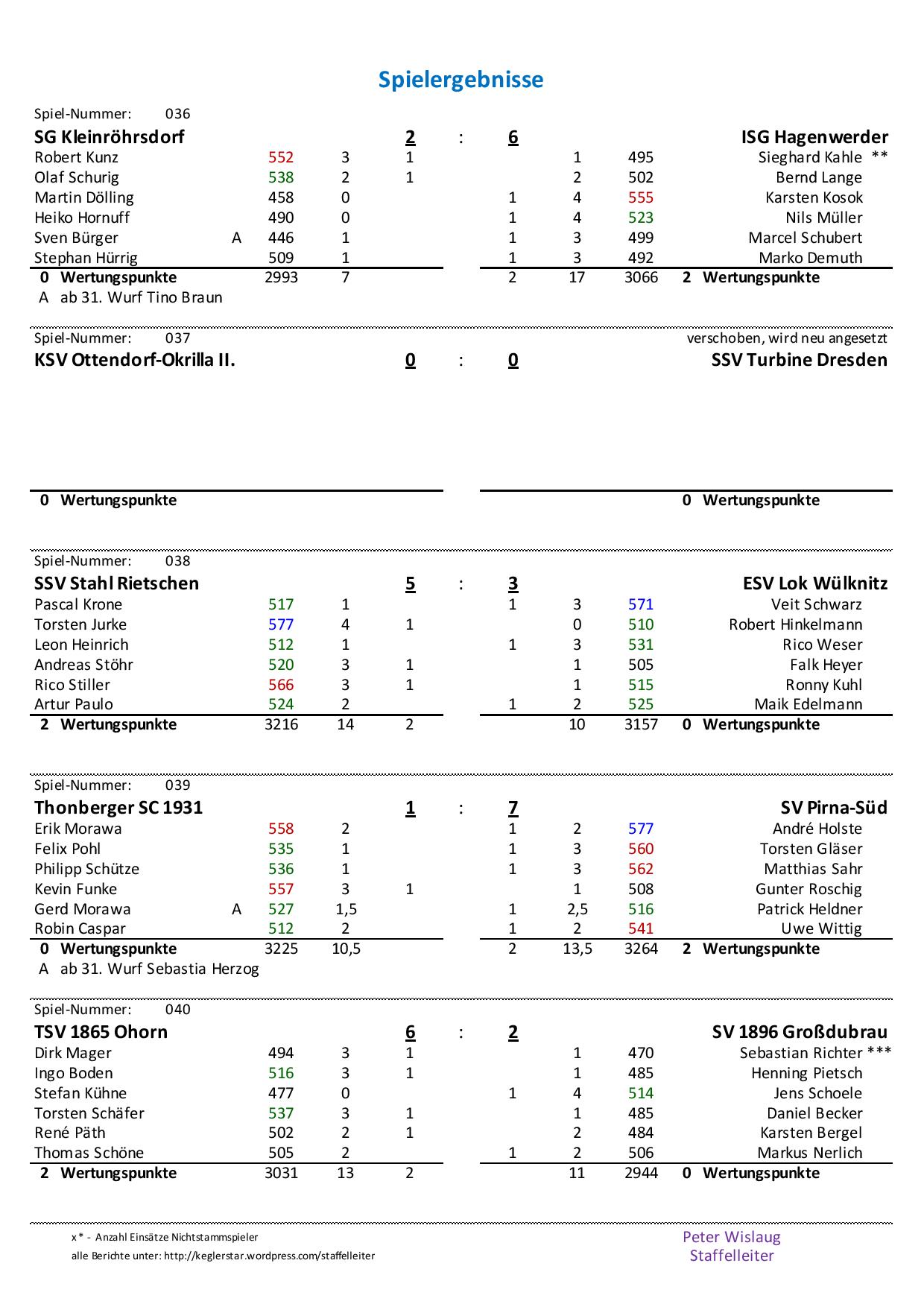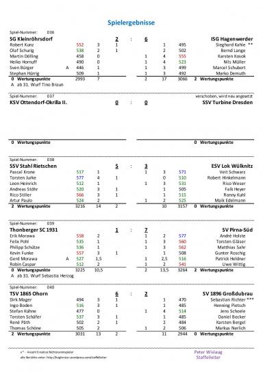 Wir spielten mit: Robert Kunz 552 Holz (1MP), Olaf Schurig 538 Holz (1MP), Martin Dölling 458 Holz (0MP), Heiko Hornuff 490 Holz (0MP), Sven Bürger / Tino Braun 446 Holz (0MP) und Stephan Hürrig 509 Holz (0MP).