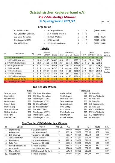 SG Kleinröhrsdorf 1. - ISG Hagenwerder 2993:3066 (2:6)