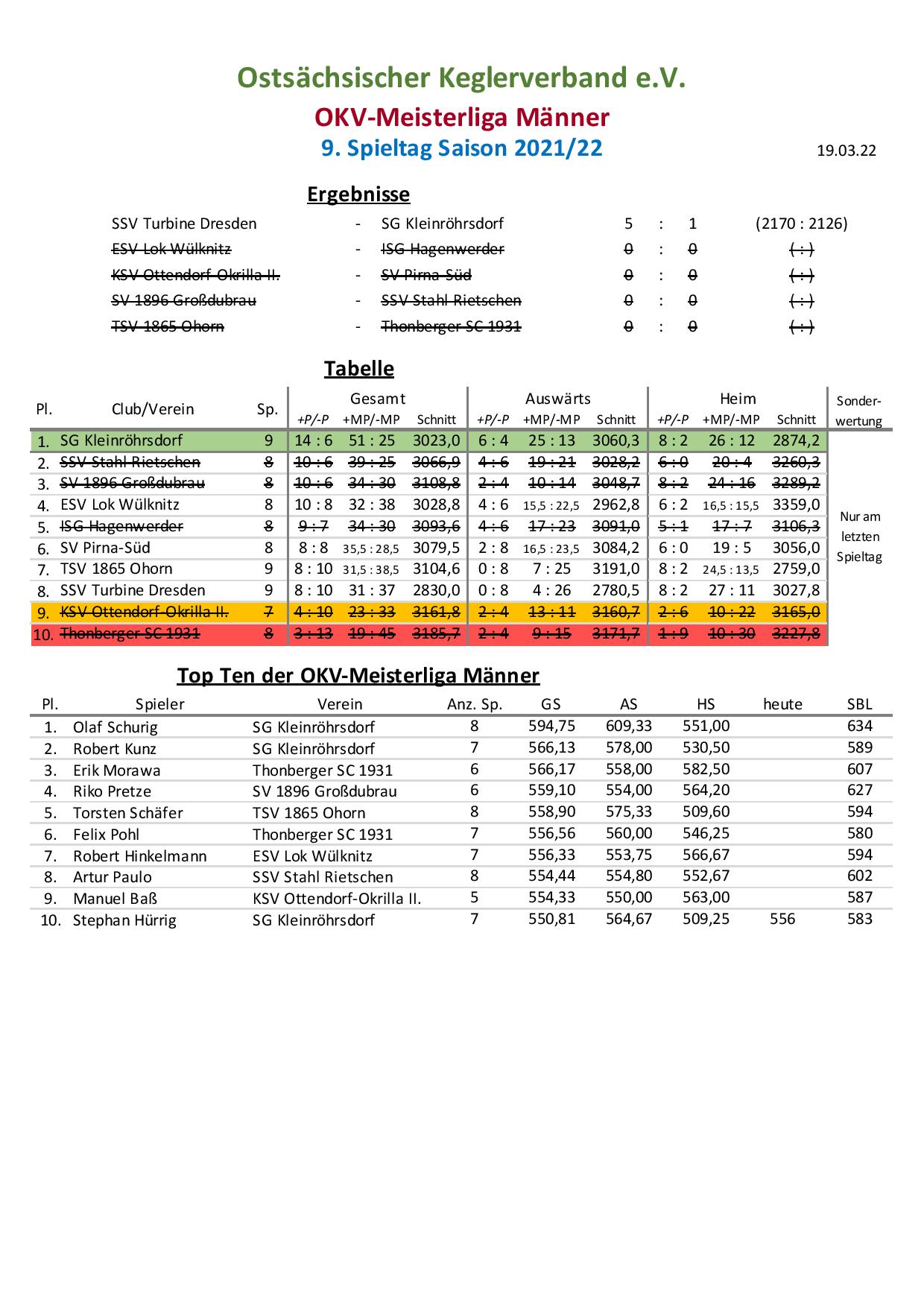 SSV Turbine Dresden 1.- SG Kleinröhrsdorf 1. 2170 - 2126 (5:1)