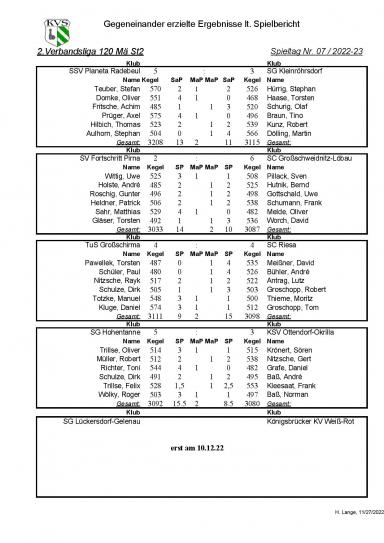 Wir spielten mit: Stephan Hürrig 526 Holz (0MP), Torsten Haase 468 Holz (0MP), Olaf Schurig 520 Holz (1MP), Tino Braun 496 Holz (0MP), Robert Kunz 539 Holz (1MP) und Martin Dölling 566 Holz (1MP).