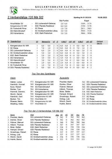 SG Kleinröhrsdorf - SC Großschweidnitz / Löbau 3044 - 3124 (3:5)
