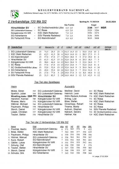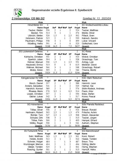 Kleinröhrsdorf spielte mit: Robert Kunz 501 Holz (1MP), Torsten Haase 510 Holz (0MP), Tino Braun 487 Holz (1MP), Martin Dölling 496 Holz (1MP), Stephan Hürrig 501 Holz (0MP) und Heiko Hornuff 513 Holz (1MP).