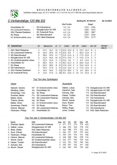 SC Riesa – SG Kleinröhrsdorf 1. 3253 : 3300 (3:5)