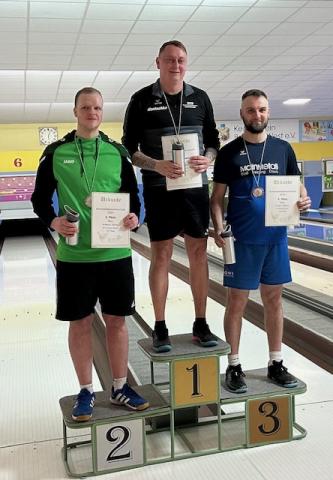 Die Finalisten spielten: Paul Liebold 547 und 557 Holz / 1104 Holz, Platz neun, Toni Schölzel 545 und 565 Holz / 1110 Holz, Platz acht, Stephan Hürrig 584 und 568 Holz / 1152 Holz, Platz vier, Robert Kunz 604 und 560 Holz / 1164 Holz, Platz drei, Olaf Schurig 542 und 573 Holz / 1115 Holz - Kreismeister und Tino Braun 570 und 553 Holz / 1123 Holz - Kreismeister !!!