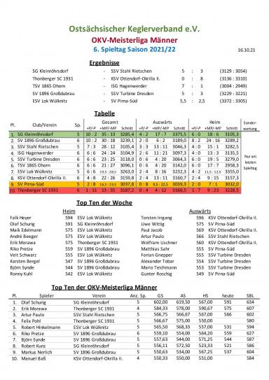 Der 16.10. war ein Wochenende für Kleinröhrsdorf. Die 2.Mannschft gewann ihr Heimspiel gegen Laußnitz und die 1.streckte Rietschen nieder. Von Beginn an zeigten wir den Siegeswillen. Robert und Olaf begannen das Spiel. Robert mit durchschnittlichem Ergebnis konnte seinen Punkt holen. Olaf spielte wieder auf ganz hohem Niveau. Seine 591 Holz, wieder ein Bahnrekord. Top !!! Die nächsten waren Martin und Heiko. Martin brauchte mal wieder einen kleinen Erfolg. Mit seinen 520 Holz konnte er sein Spiel gewinnen. Heiko verspielte seinen Punkt bei den letzten Räumern. Schade. Sven zur Zeit weit weg von seiner normalen Form musste erneut seinen Punkt abgeben. Stephan hatte das ganz schwere Los. Von Beginn an keine Chance gegen den sehr starken Artur Paulo von Rietschen 566 Holz. Am Ende standen die besseren Holz auf unserer Seite und wir konnten den nächsten Sieg verbuchen. Nun ist erst mal ein Wochenende Spielpause. Das haben wir uns verdient. Am 30.10. ist unser nächstes Spiel in Ottendorf. Wird nicht einfach werden