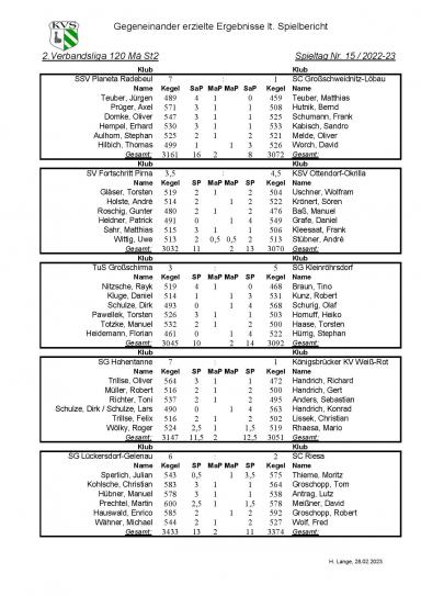 Wir spielten mit: Tino Braun 468 Holz (0MP), Robert Kunz 531 Holz (1MP), Olaf Schurig 568 Holz (1MP), Heiko Hornuff 503 Holz (0MP), Torsten Haase 500 Holz (0MP) und Stephan Hürrig 522 Holz (1MP).