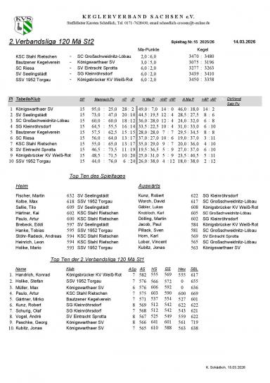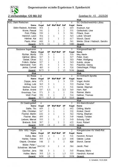 SV Seelingstädt – SG Kleinröhrsdorf 1. 6:2 (3439:3410)